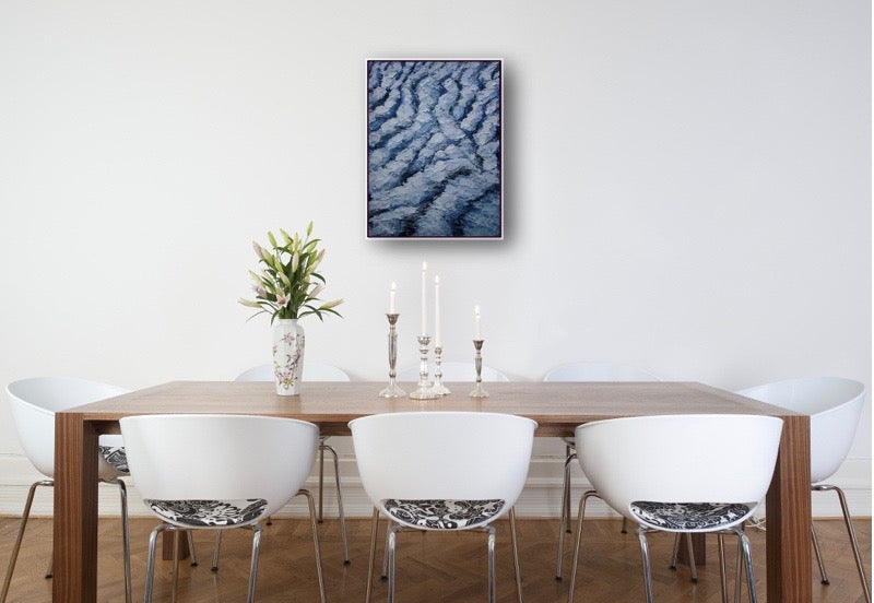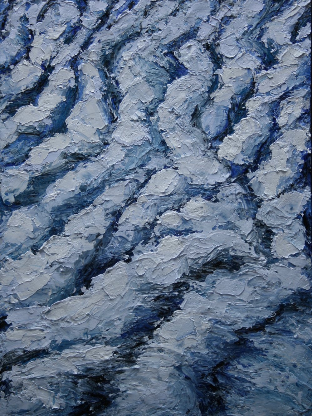 Working with flexible metal painting knives, I build textured, impasto surfaces that capture the immediacy and energy of each piece—a record of momentum, material, and mark-making.