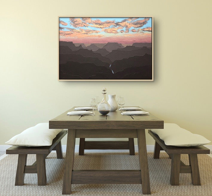An original acrylic painting capturing the Grand Canyon from Moran Point, named after the legendary landscape painter Thomas Moran whose 19th-century works helped inspire the creation of the national park itself.